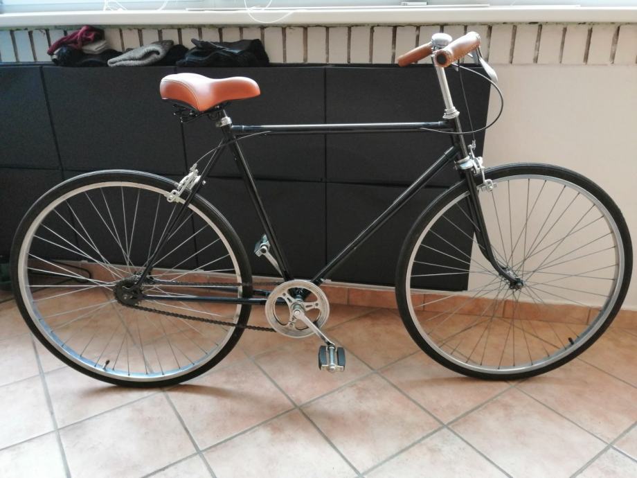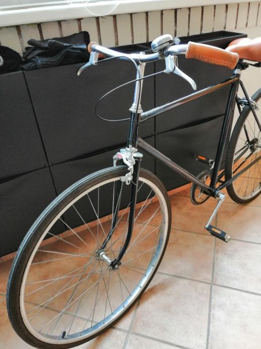 Prodajem stari gradski bicikl marke Rog koji je obnovljen. Obojan je u crnu boju, dodan novi sic i rucke, pedale, nove gume vanjske i unutrasnje, kocnice, sajle, sreden pogon, ureden.