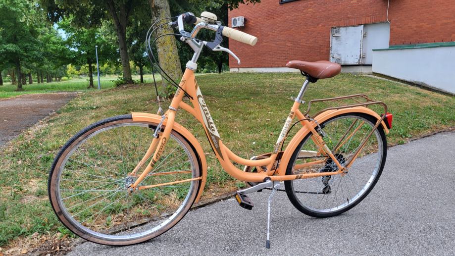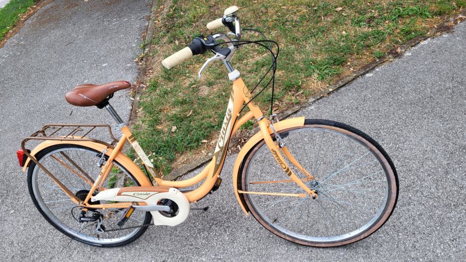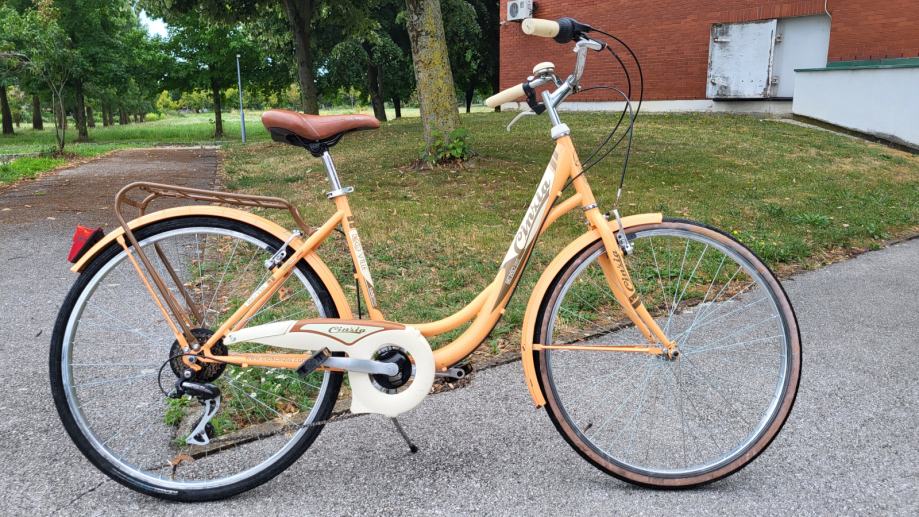 Gradski retro-vintage bicikl Cinzia(Italy) 'De Ville', ALU kotači 26", Shimano RevoShift mjenjač 6 brzina, V-kočnice, paketsic, nogara, zvono, blatobrani... Bicikl je vrlo udoban za vožnju, redovito održavan servisiran i spreman za vožnje.