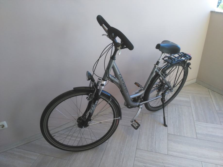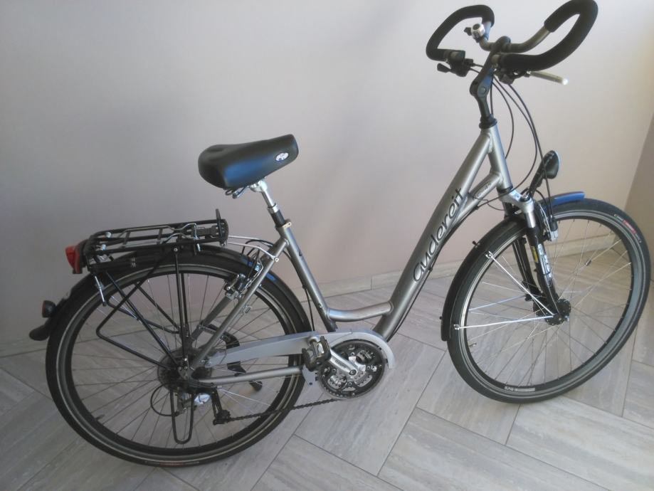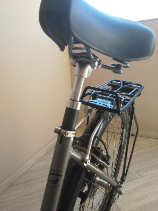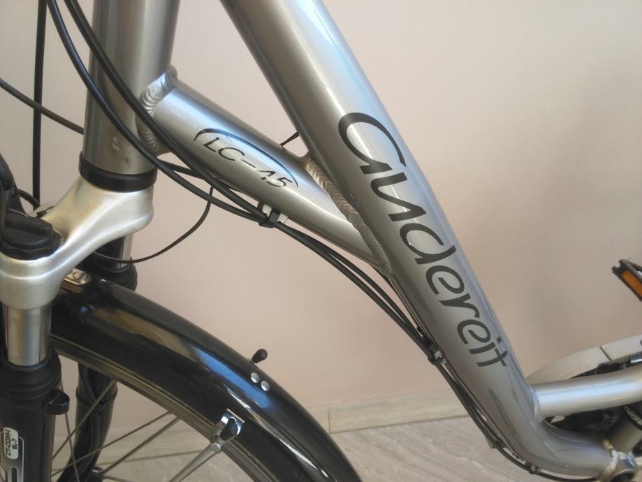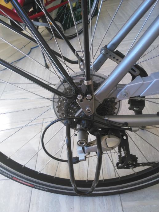 Prodajem GUDEREIT LC 45 treking bicikl, veoma kvalitetan, prozveden u Njemackoj. Rama je aluminijska, visina 50 cm, kotaci su 28", a gume dimenzije 28x1,50 (40-622), marke Schwalbe sa zastitom od probijanja. Ima 27 brzina, saltung je DEORE LX. Dinamo se nalazi na 1.osovini, ima amortizere naprijed i pod sjedalom, hidraulicne kocnice MAGURA. Bicikl je malo vozen, u odlicnom je stanju i izgleda kao nov, sto se vidi i na slikama, sve super funkcionira.
