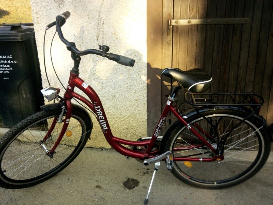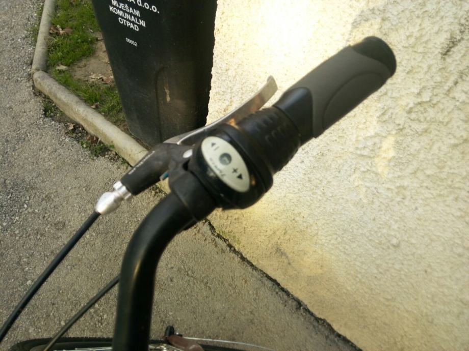 Gradski bicikl,aluminijska rama,7 brzina u getribi,torpedo kočnica,led rasvjeta,26 cola kotači! Bicikl je bez ogrebotine,skoro pa nevožen !!!