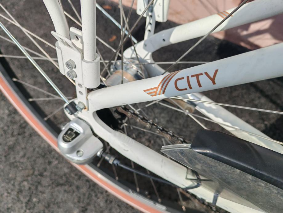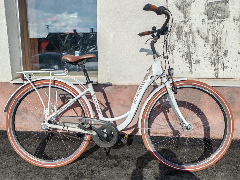 Kross Moderato, aluminijska rama vel. 'M' (seat tube 44cm), Nexus 3 brzine u straznjoj nabi, dupli obruci, blatobrani, prtljaznik, lancobran, led svjetla, amortizer cijevi sica.