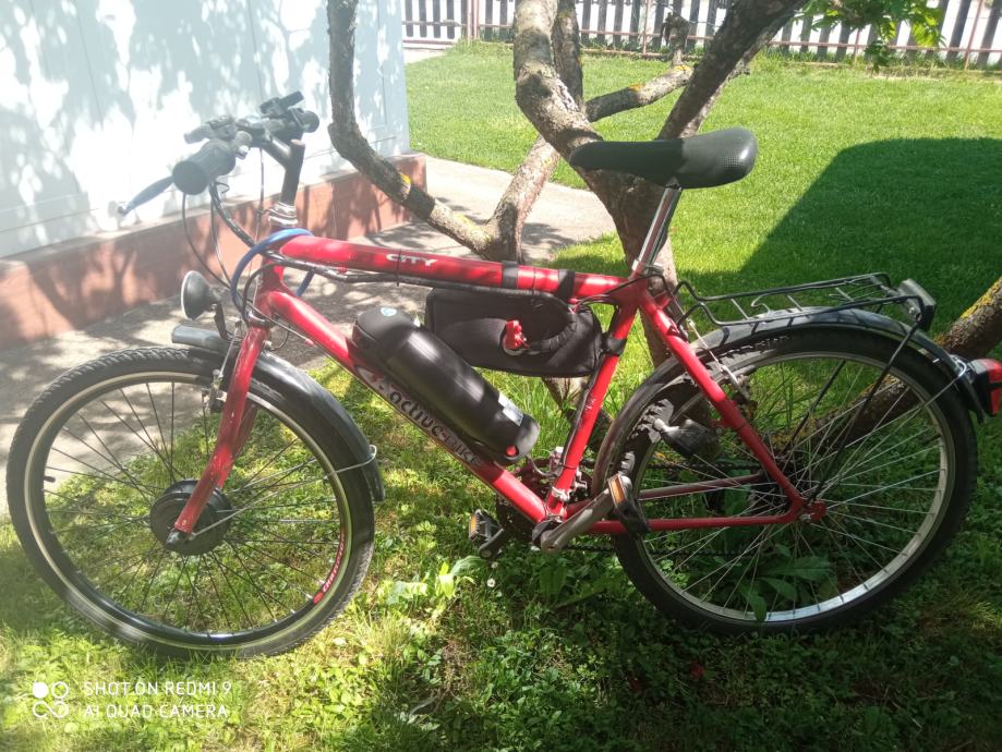 26", 18 brzina, malo vožen, kao nov, servisiran, sa propisanom signalizacijom, novi električni kotač 250W i nova baterija 36V 10Ah