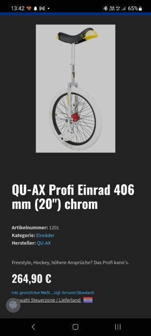 Monocikl, profi vrhunske kvalitete , 20" , 60eur, novi u trgovini 250eur