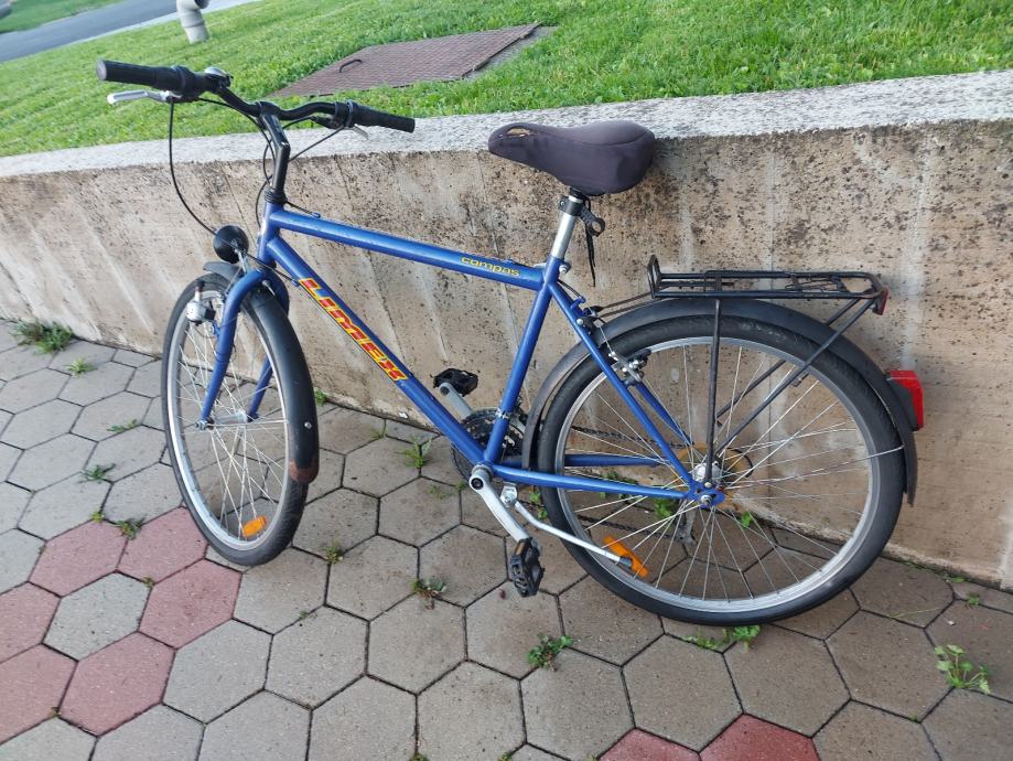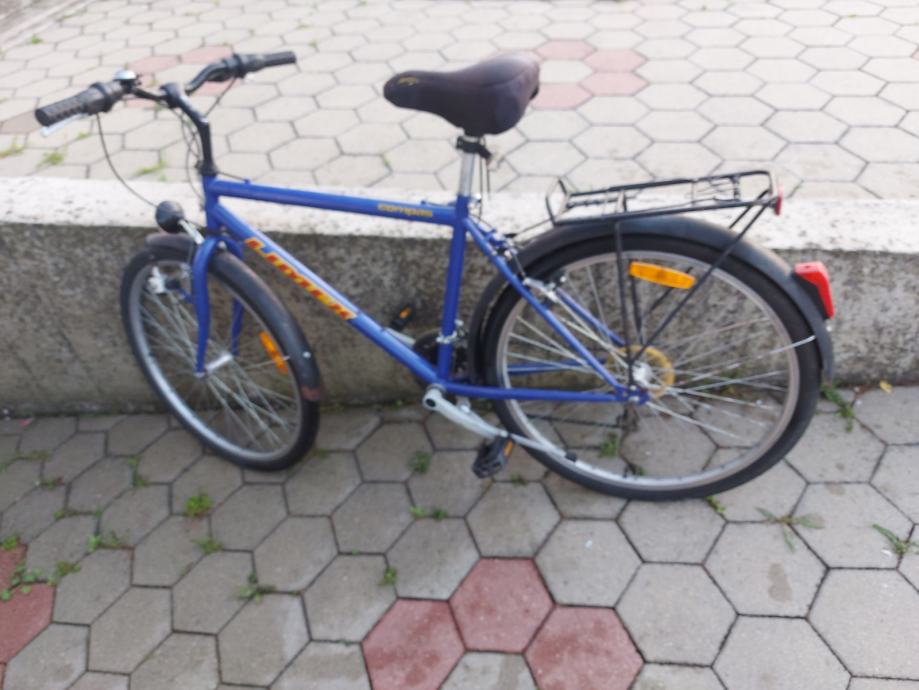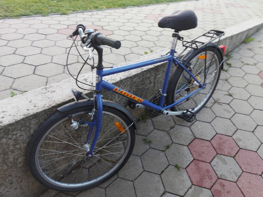 Prodajem muški gradski bicikl Limex, kotači 26", plave boje. Okvir je muške geometrije, veličine XL (53-57 cm). Bicikl dolazi s prtljažnikom na stražnjem dijelu, blatobranicima, ručnim kočnicama i mjenjačem brzina.