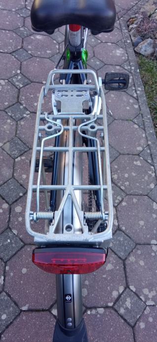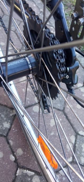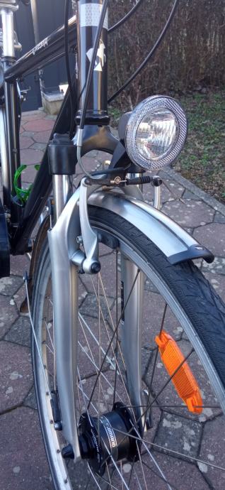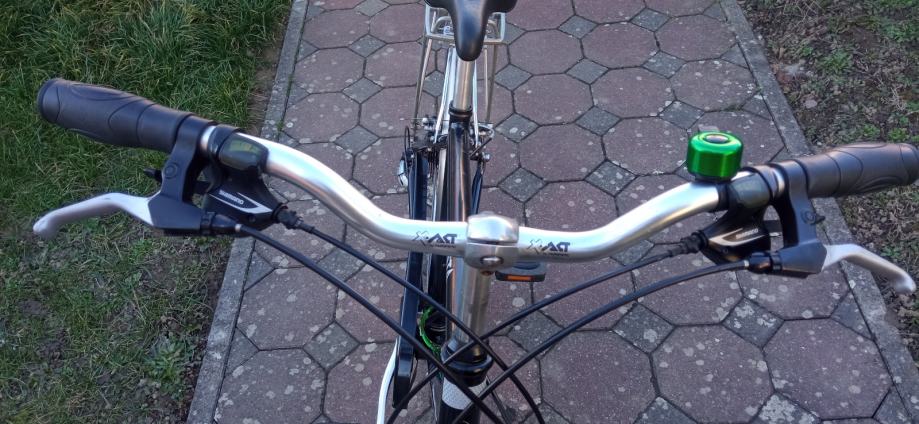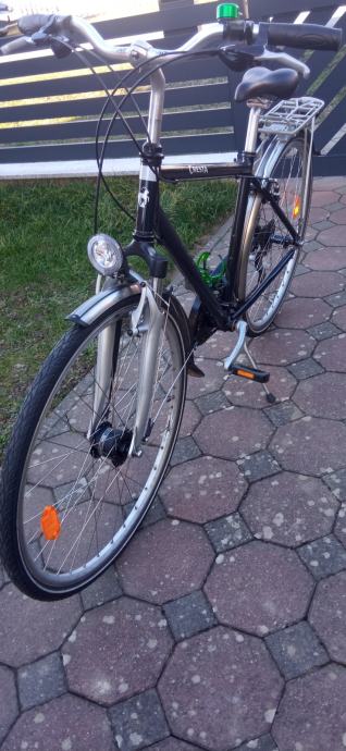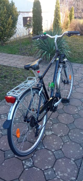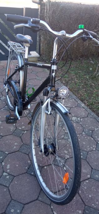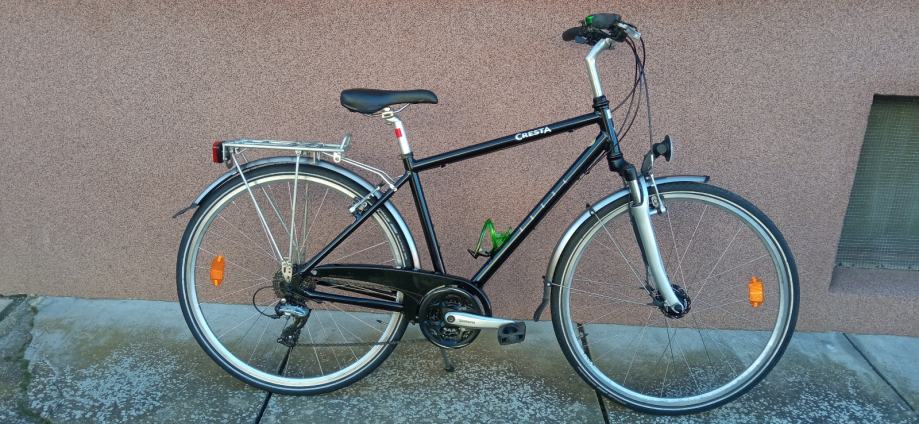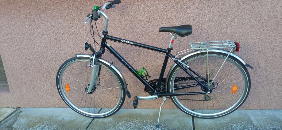 prodajem iznimno kvalitetan muški gradski bicikl renomiranog švicarskog proizvođača CRESTA u stanju kao nov,alumijska rama,najoptimalniji za visinu vozača od 162-184 cm,kotači 28 cola,aluminijske felge s duplom stijenkom za veću nosivost-ZAC 2000,inox žbice,gume s reflektirajućim bočnim trakama i zaštitom protiv bušenja u odličnom stanju-SCHWALBE ROAD CRUISER,24 brzine 3x8,led svjetla na prekidač,SHIMANO dinamo u glavi prednjeg kotača,prednja vilica sa suspenzijom-SR SUNTOUR,alu šipka sjedala,široki komforni alu volan-X-ACT,alu lulica volana,ergonomske ručice volana,udobno gel sjedalo-SELLE ROYAL,kočnice i ručice kočnica V brake-TEKTRO,nove pakne kočnica-SACCON,polykarbonatni blatobrani-SKS,oba mjenjača,ručice mjenjača,kazeta,lanac,pogon sve SHIMANO,čvrsti alu paktreger nosivosti do 25 kg-PLETSCHER,alu bočni nogar-PLETSCHER,zvono itd,u cijenu uračunata dostava do 50 km u jednom smjeru,bez dostave cijena 9 eura niža