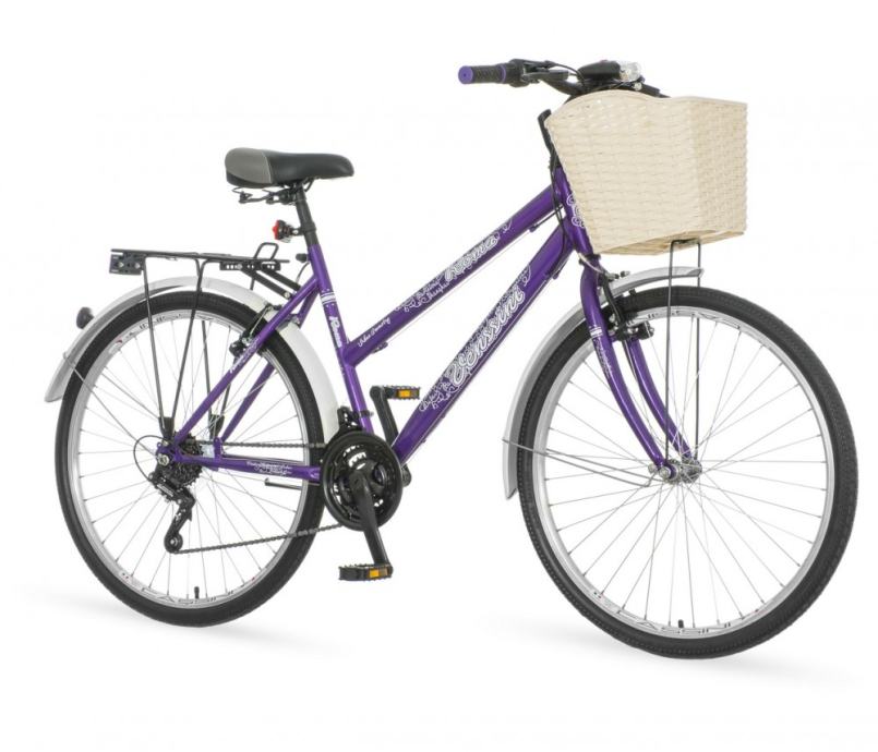 Gradski bicikl sa košarom i brzinama. Modernog dizajna i boje.