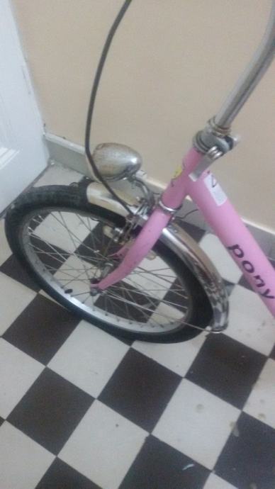 ODLIKUJU GA LAGANI ALUMINIJSKI KOTAČI, ČVRSTA PREKLOPNA RAMA, PREDNJA RUČNA KOČNICA, STRAŽNJA TORPEDO KOČNICA.BICIKL IMA FUNKCIONALNO PREDNJE I STRAŽNJE SVIJETLO ZA NOĆNU VOŽNJU, MAČJE OČI TE JE VRLO PRAKTIČAN ZA GRAD. VRLO DOBRO ODRŽAVAN ŠTO SE VIDI IZ FOTOGRAFIJA I SJAJNIH BLATOBRANA I LANCOBRANA.