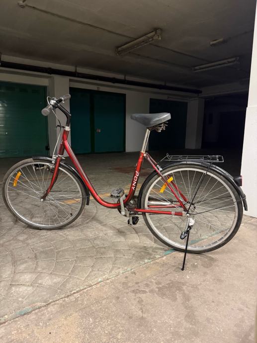 Prodajem originalni Pony gradski bicikl.Bicikl je opremljen stražnjim nosačem prtljage, blatobranima i ugrađenim dinamom za osvjetljenje. Ima klasičan dizajn s niskim okvirom koji olakšava uzlazak i silazak, što ga čini praktičnim za svakodnevnu vožnju po gradu. Opremljen je reflektorima na kotačima i pedalama za dodatnu sigurnost. Sjedalo je udobno, a upravljač ergonomski oblikovan. Bicikl je funkcionalan i spreman za vožnju.