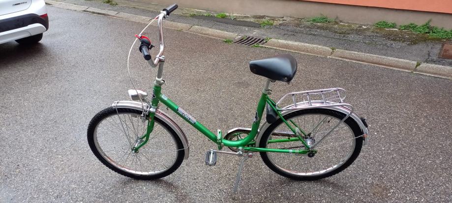 Njemački, rasklopiv, maxi pony sa 24 cola kotačima, bez brzina, dobrim gumama, ( skoro novim - malo korištenim ) zadnjom nožnom kočnicom, blatobranima, prtljažnikom, svijetlima itd. Bicikl, je orginalan, sačuvan, ispravan, ali nije kao nov. Pogledajte i ostale moje oglase ! Ako ste kupac nazovite ! Moj T : 091 519 3860 L.P.