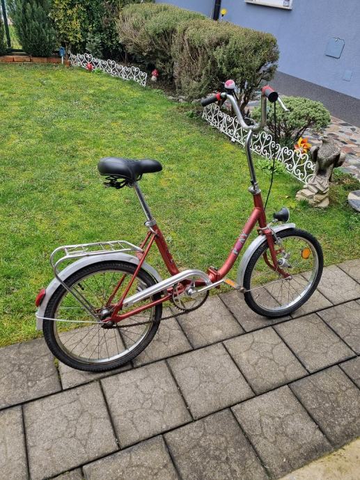 Pony rog bicikl u dobrom je stanju.Da se preklopiti i stane u svaki auto.Boja mu je original.Ima ljepi široki i ugodan sic.Prednja ručna i zadnja nožna kočnica kočiju dobro.Na biciklu nema nigdje hrđe.Za svoje godine dobro usčuvan.