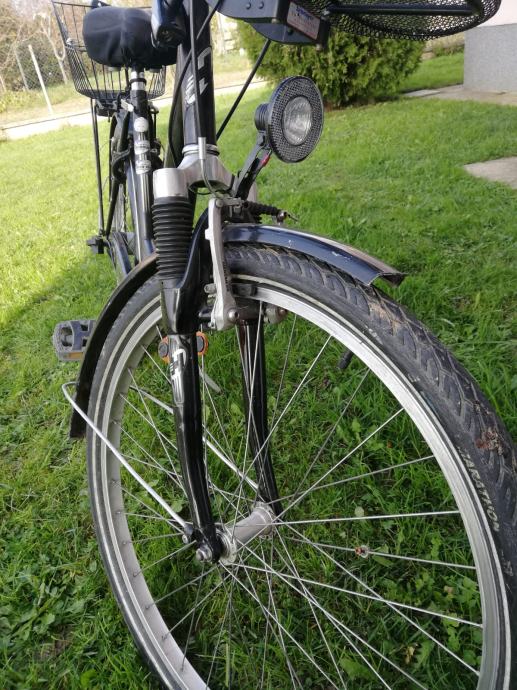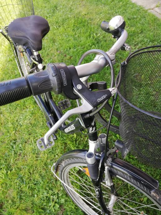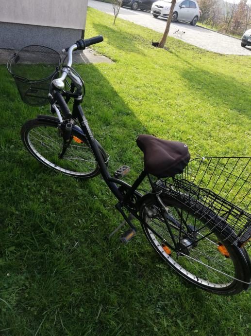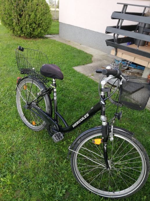 Prodaje se ženski bicikl Hercules s 5 brzina,amortizeri,Vbrake kočnice,2 košare,prednja i zadnja svijetla. Živim u Samoboru.