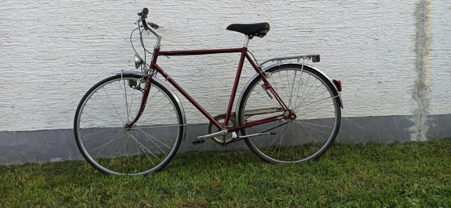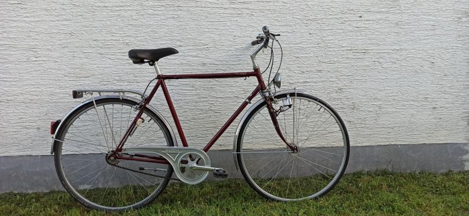 Vintage muški touring/gradski bicikl u OK stanju,TRI Kočnice - Pogon crankset Germany Thun Alu firkant 170 mm šajba 46 zuba Alu - Torpedo kočnica u zadnjoj glavi na pedale i Felgen bremse Weinmann Alu komplet - Blatobrani kromirani - Paktreger AL - Svjetla Dinamo ispravno sve radi - Felge Alu 27" ETRTO 16-630 Weinmann Belgium, gume dobre 32 - 630 - Podesiv za vozače 170 - 190 cm visine - Podesi, sjedni i vozi, bez dodatni troškova - Kontakt Miro velo2grga mob 098 529 693 SMS - poziv