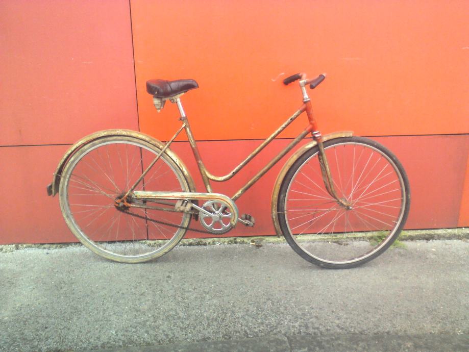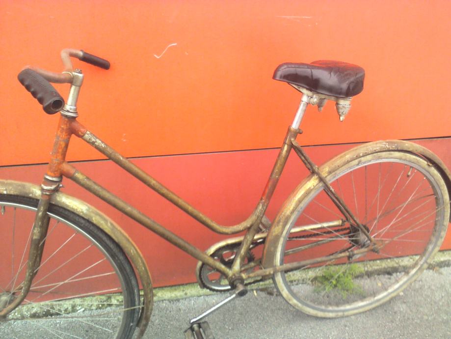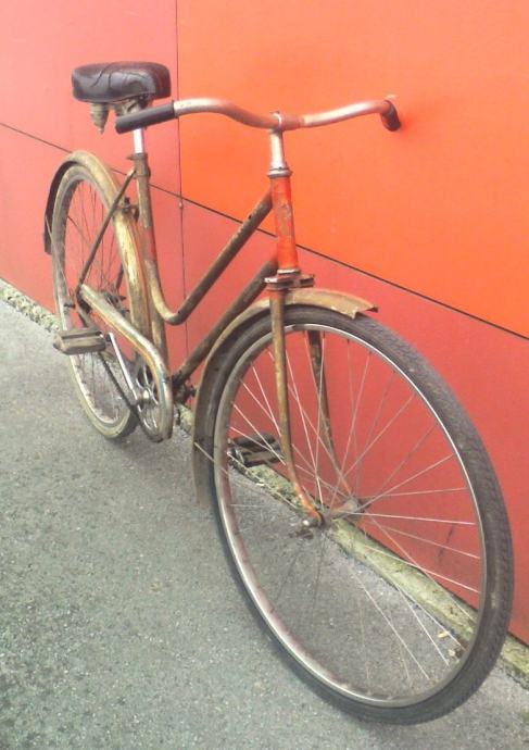 Iz početka 60tih godina, orginal ispravno vozno stanje, kotači 28". Rusty colour, cijena 50€, prema potrebi šaljem dostavom ili busem nakon uplate, dostavu plača kupac.