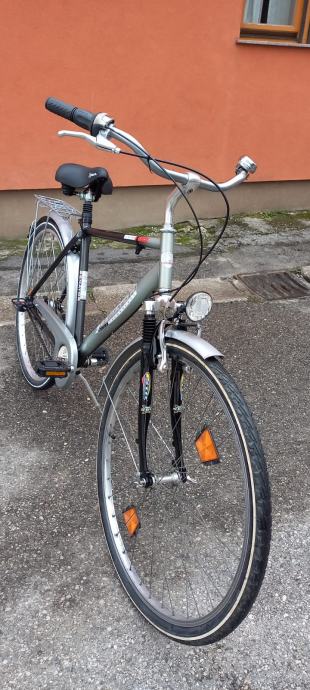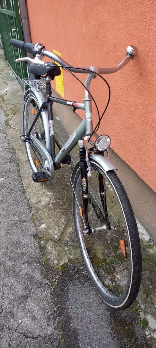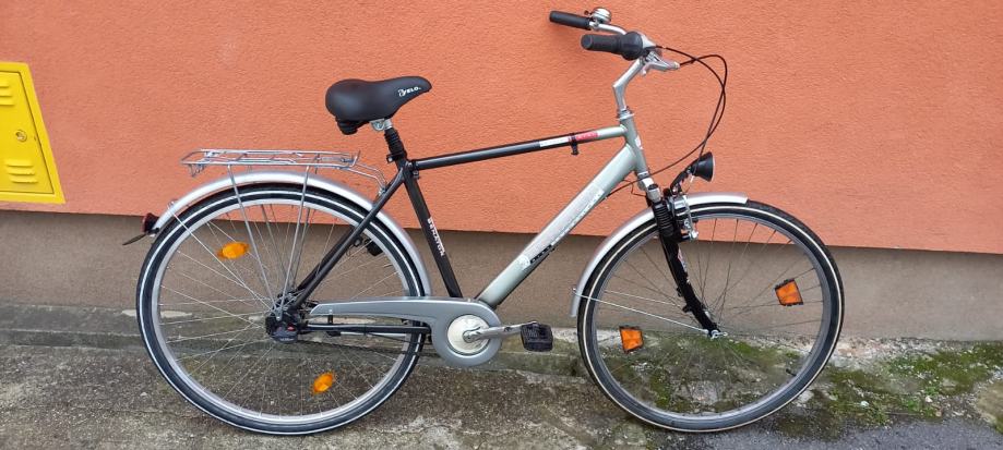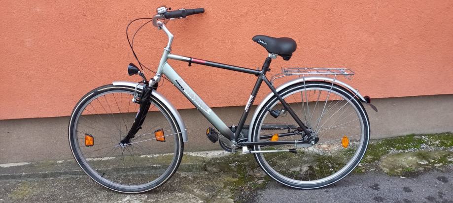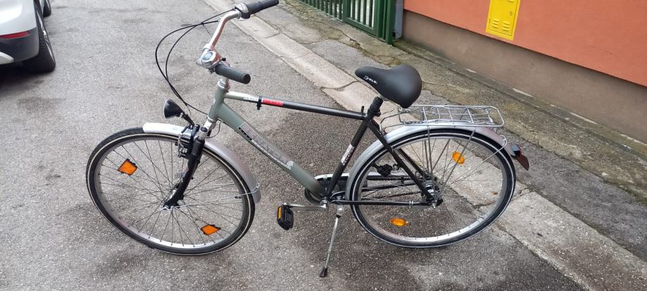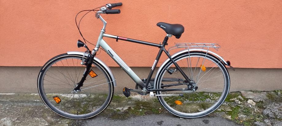 Senator njemački, gradski bicikl sa 28 cola kotačima, 7 brzina, ( Sram mjenjač ) zadnja nožna, torpedo kočnica, željezna rama 50 cm potpuno novo kvalitetno sjedalo, blatobrani, prtljažnik, svijetla itd. Bicikl očuvan, ispravan, sijest i vozi. Pogledajte ostale moje oglase!