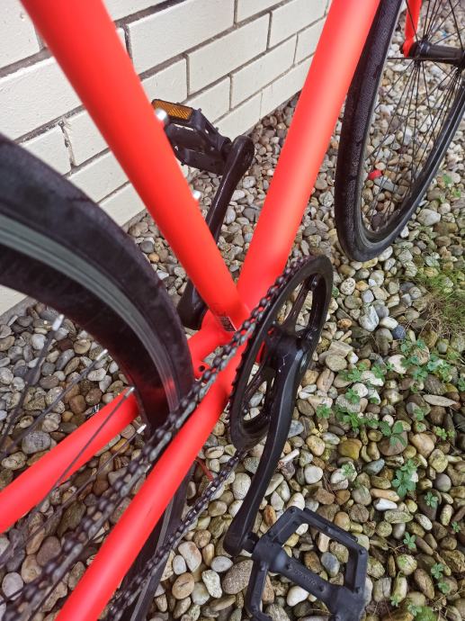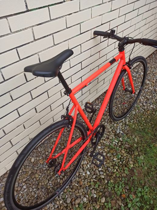 Pozdrav, prodajem svoj single speed bicikl jer u zadnje vrijeme skuplja prašinu u garaži. U odličnom je stanju, sve funkcionira, nema nikakvih ulaganja na njemu, idealan za grad. Vide se tragovi korištenja (nekoliko ogrebotina na pedalama i rami), ništa posebno. Uvijek je bio garažiran i redovito održavan. Sa njim dolaze 2 lokota (sajla i U-lock) i dvije ledice. Veličina rame L. Moguće ga je pogledati u centru grada Zagreba.
