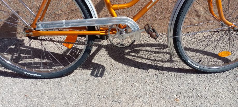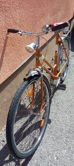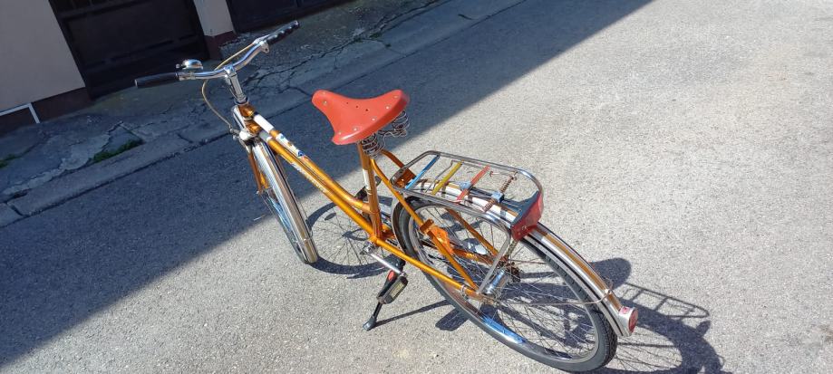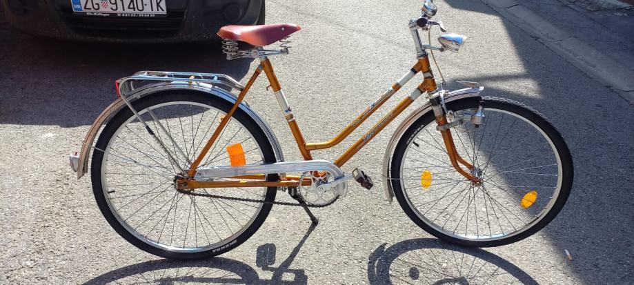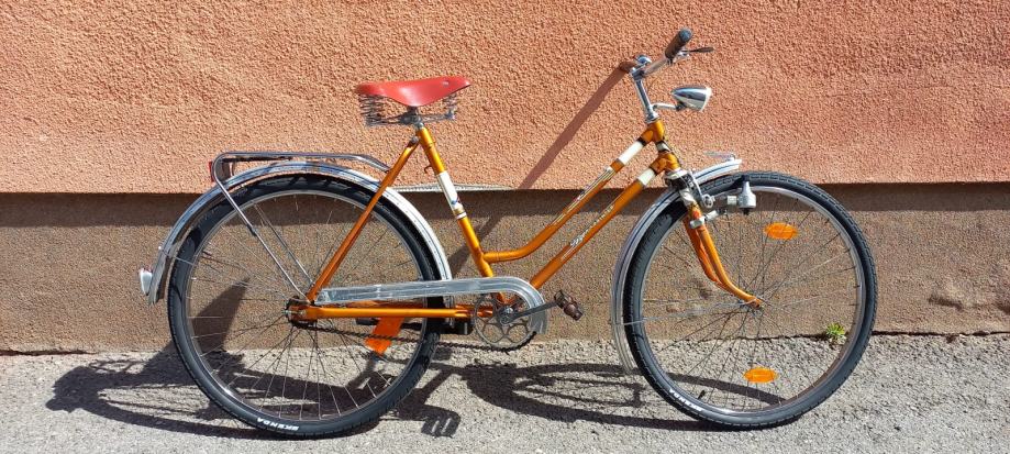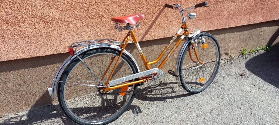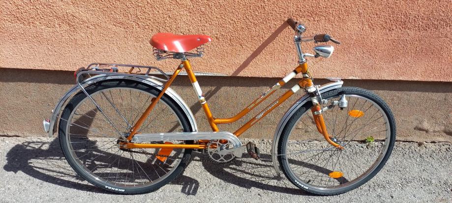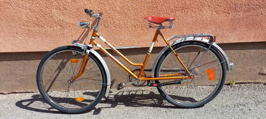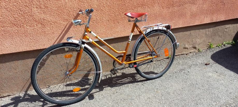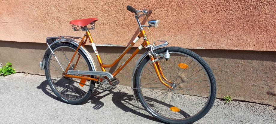 Staiger njemački, gradski, ženski bicikl ( old timer ) sa 26 cola kotačima, potpuno novim još nikad korištenim vanjskim gumama, novim sjedalom i novom parkirnom nožicom. Bicikl je jako dobro očuvan, orginalna farba ( nikad ništa farbano ) servisiran, sijest i vozi. Pogledajte ostale moje oglase ! Ako ste kupac nazovite ! Moj T : 091 519 3860 L.P.