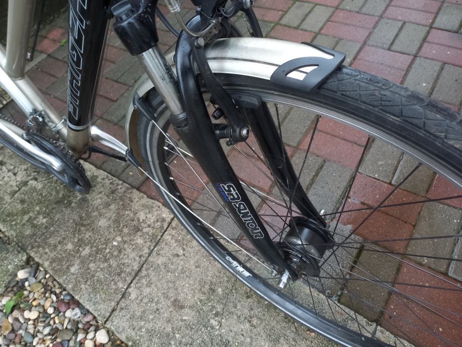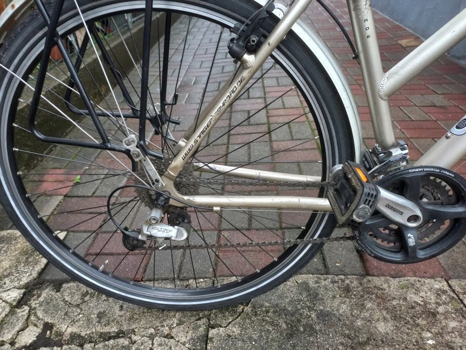 28 colni dvoslojni kotači, ram aluminijski 50 cm, 24 brzine, mašinica deore XT, dinamo u prednjoj nabi, štanga sjedala s amortizerom, sve ispravno, gume dobre, na poruke ne odgovaram