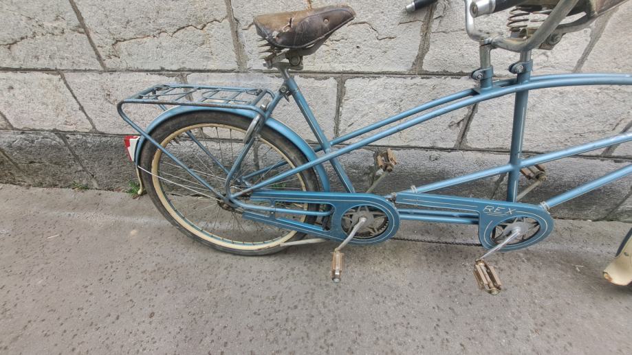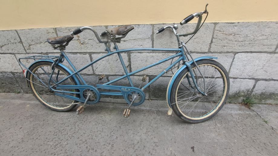 Tandem ili dvocikl renomirane americke marke REX iz pedesetih godina proslog veka. Prva boja fabricko stanje. Postoji mogucnost rentiranja za snimanje filmova uz dogovor