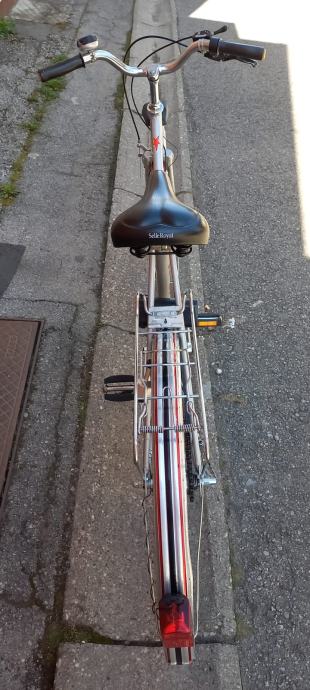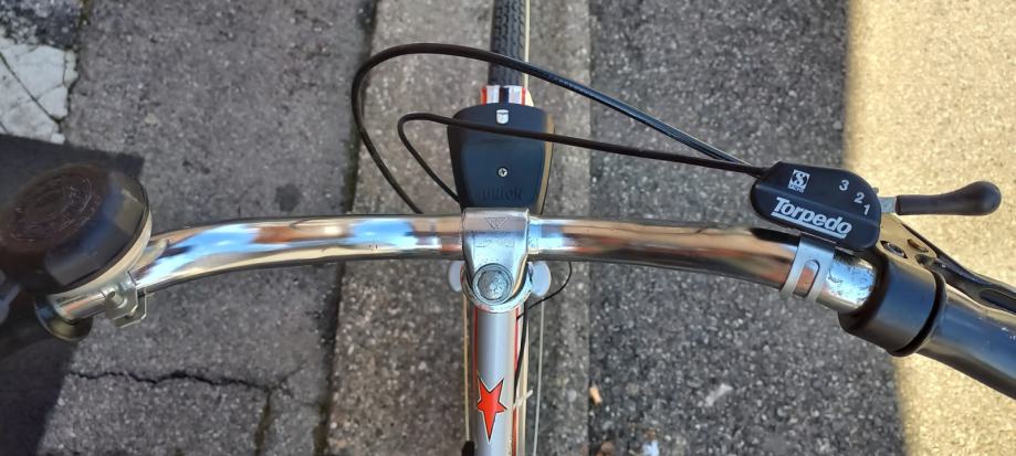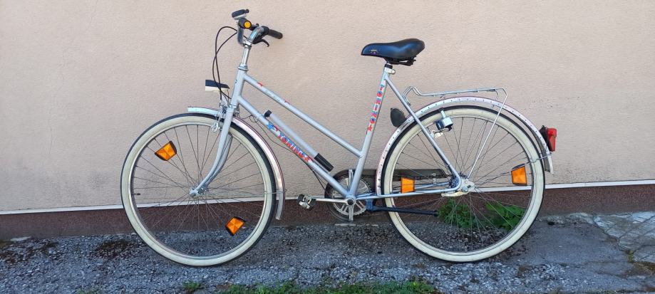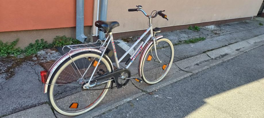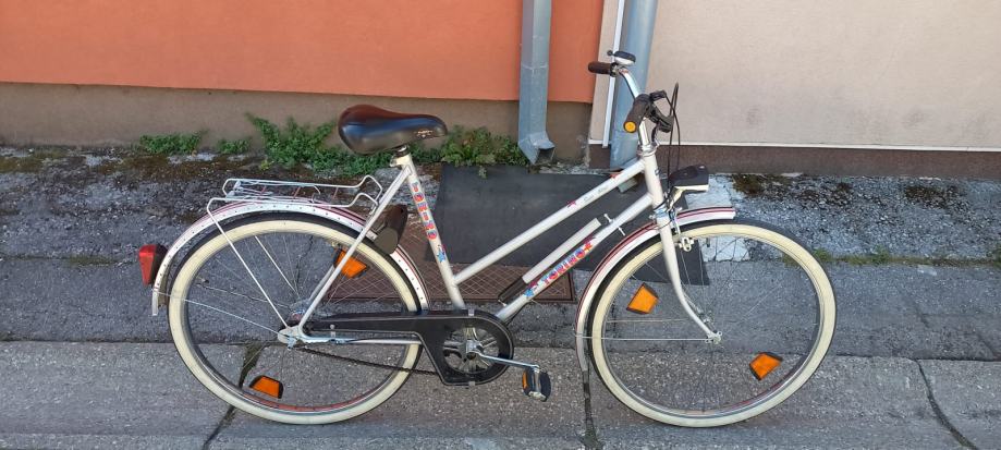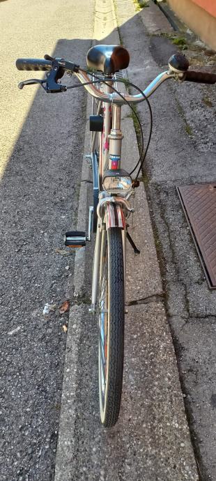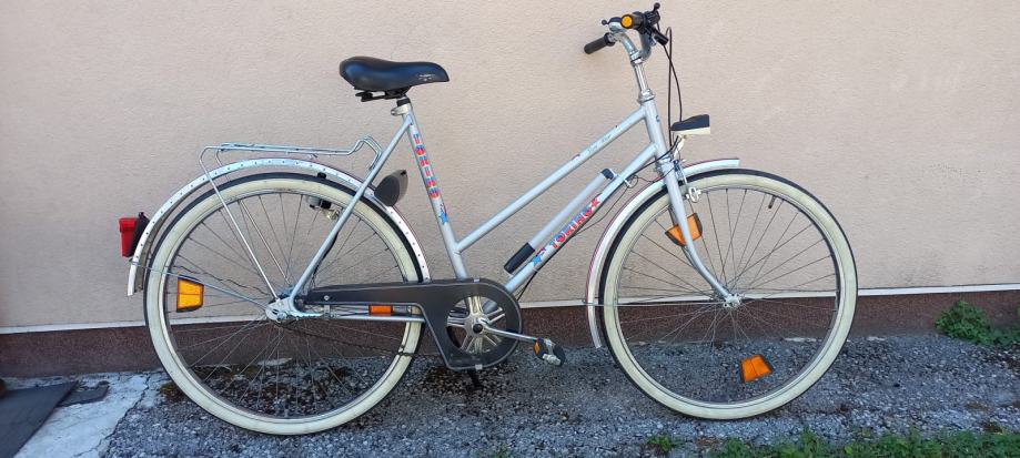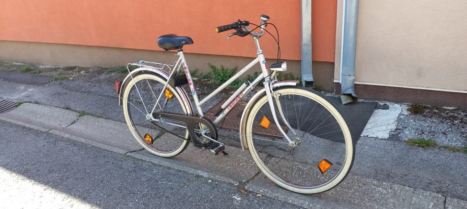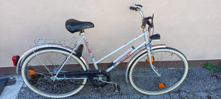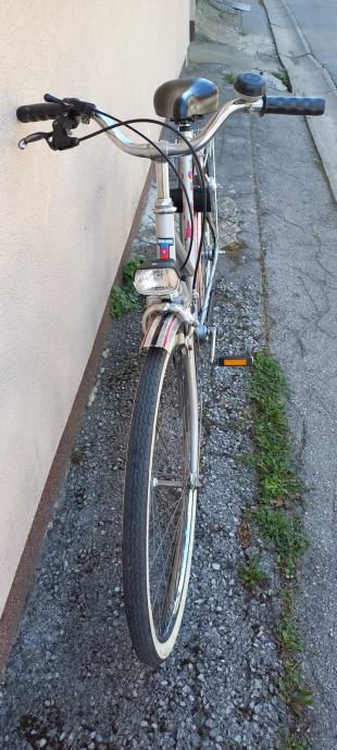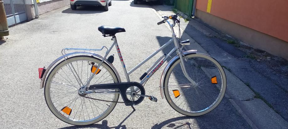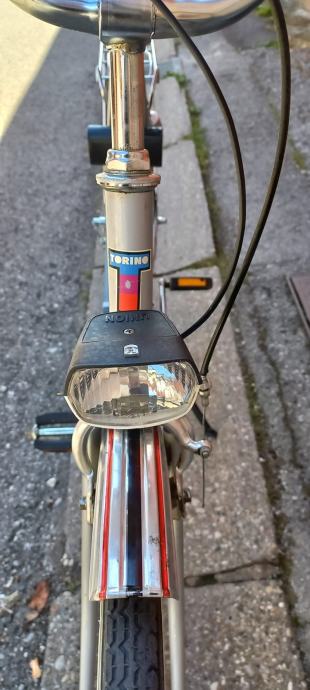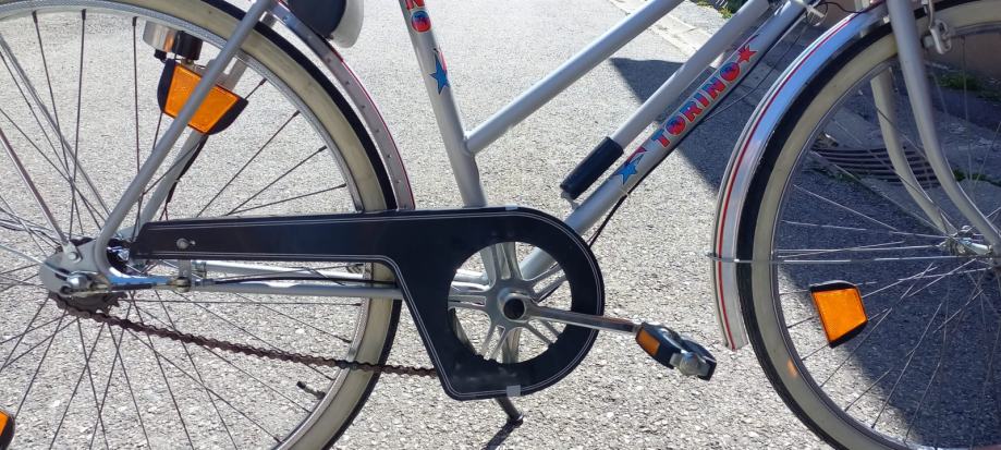 Torino ženski, gradski bicikl sa 26 cola kotačima, 3 brzine u zadnjoj nožnoj, torpedo kočnici, željezna rama 54 cm blatobrani, prtljažnik, svijetla itd. Bicikl je u orginalnom , očuvanom,stanju ( čak i gume ) bez hrđe ili nekakvog farbuckanja. Bicikl za preporučit ! Pogledajte i ostale moje oglase ! Ako ste kupac nazovite ! Moj T : 091 519 3860 L.P.