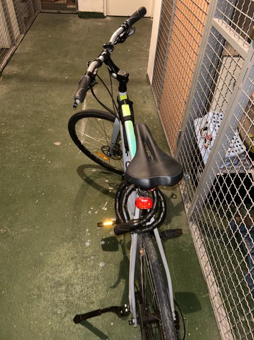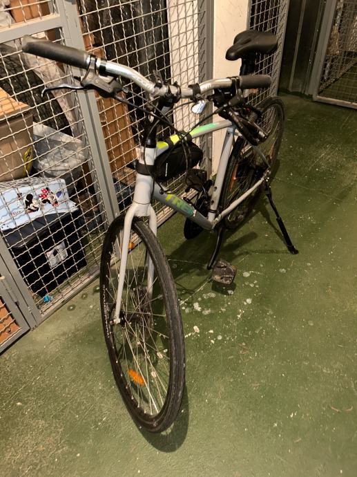 Prodajem gradski bicikl Trek FX2 Disc, veličina okvira L (48-52 cm), muška geometrija. Radi se o popularnom modelu iz Trek-ove FX linije, opremljenom disk kočnicama. Okvir je sive boje s karakterističnim zeleno-tirkiznim detaljima. Bicikl dolazi s nosačem za bidón, stražnjim svjetlom i torbom ispod sjedala.