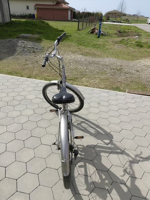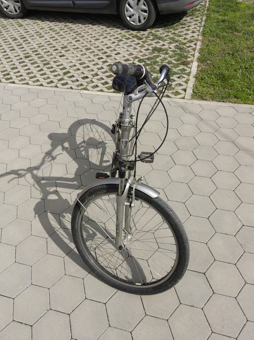 Bicikl je u prekrasnoj srebrno-ljubičastoj boji s udobnim sjedalom i u potpunosti je prilagođen za gradsku vožnju i svakodnevni prijevoz. Opremljen je Shimano Gripshift mjenjačima koji omogućavaju nesmetano mijenjanje 21 brzine (3x7) tijekom vožnje. Okvir je izrađen od laganog Alpha White aluminija, a bicikl ima 26" kotače s Tektro V-brake kočnicama za sigurnu vožnju.