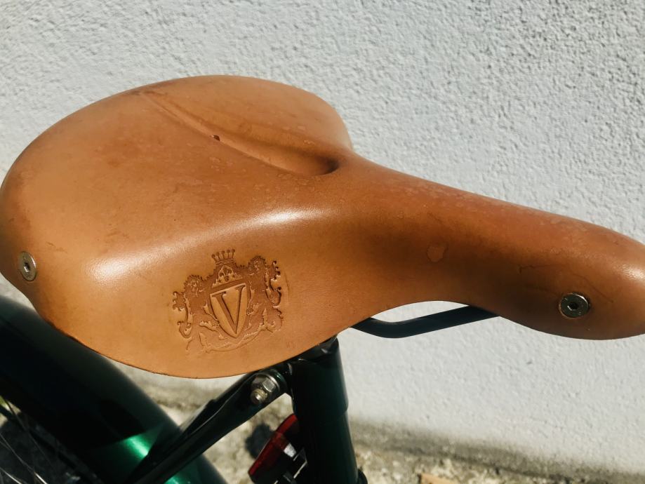 Bicikla je kao nova, vrlo malo vožena. Sjedalo ima amortizere, a izrađeno je od kvalitetne smeđe kože. Pedale super prijanjaju uz cipelu, a pri okretanju pogon lijepo “klizi”. Gume su dovoljno široke pa se ne trebate plašiti da ćete izgubiti kontrolu ukoliko naiđete na kamen na cesti. Okvir bicikle izrađen je od super kvalitetnog materijala i obojan prekrasnom kvalitetnom zelenom bojom. Bicikla ima ručnu i nožnu kočnicu. Bicikla ima i nogaru (kao Vespa), zvono, “mačje oči” s prednje i stražnje strane, zaštitu od lanca, prednji i stražnji blatobran. Posebno je zanimljiva ploča po sredini bicikle, a koja služi za reklamni natpis. Ako imate svoju tvrtku, na tu ploču možete zalijepiti svoj logo. Ukoliko nemate potrebu lijepiti reklamne natpise, ploču lako možete ukloniti jer je pričvršćena s nekoliko vijaka.