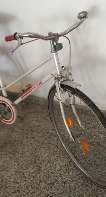 Njemački vrlo kvalitetan ženski gradski bicikl, kotači 28", torpedo itd. Bez ikakvih ulaganja sijedi i vozi, lijepa bijela perla metalic boja. Nakon uplate šaljem poštom ili busem, pouzečem ne šaljem. Dostavu plača kupac. Cijena bicikla. 50€.