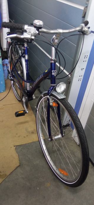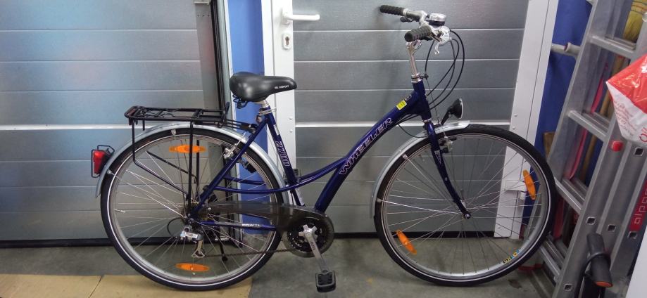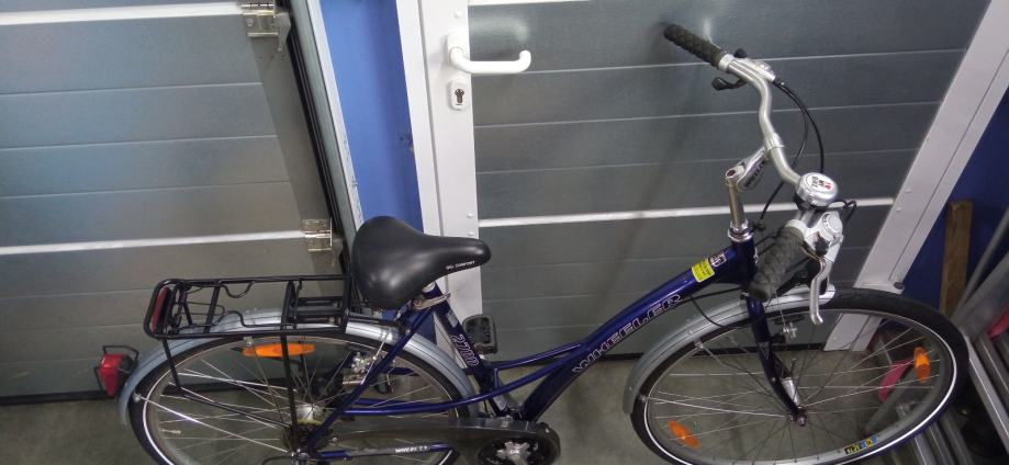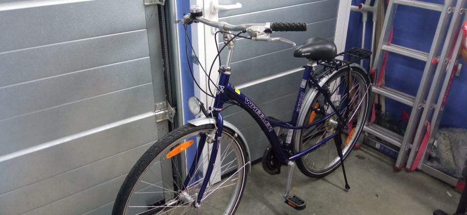 Prodajem ženski bicikl WHEELER, kotači 28 cola, ima 21 (3X7) brzinu, veličina rame L (52cm), blatobrani, paketreger, svijetla rade, kvalitetan, ispravan i uščuvan.
