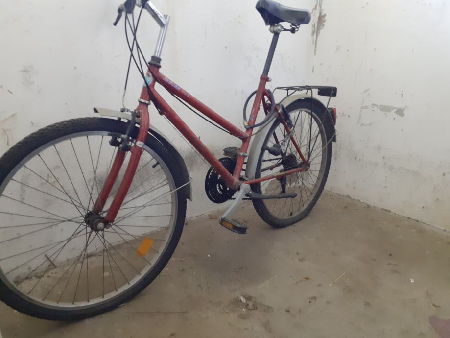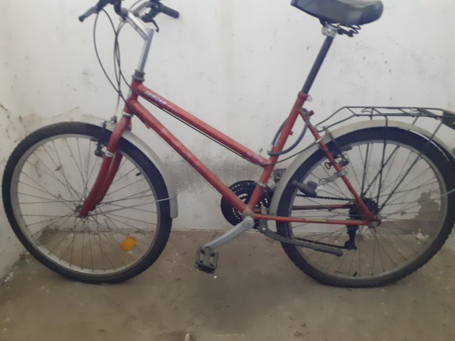Prodajem ženski bicikl sa slika, gume, kočnice, mjenjači, sajle...ok, u voznom stanju, veličina reme L, kotači 26 cola, stanje 7/10