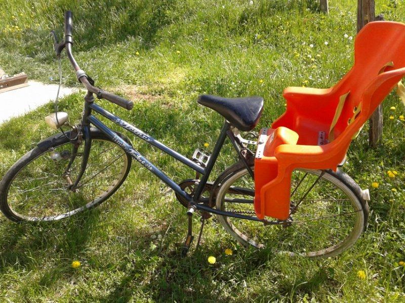 Prodajem ispravan ženski bicikl sa velikom dječjom sjedalicom.