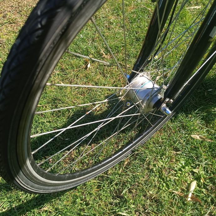 28 cola, 24 brzine, aluminijska rama, amortizacija sjedala,dinamo u prednjem kotaču, solidno stanje.