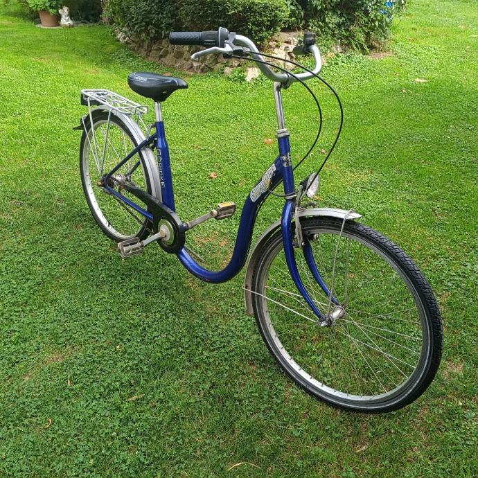 26 cola,3 brzine, aluminijska rama, pogodan za osobe koje teže ulaze i silaze sa bicikla, potpuno ispravan.