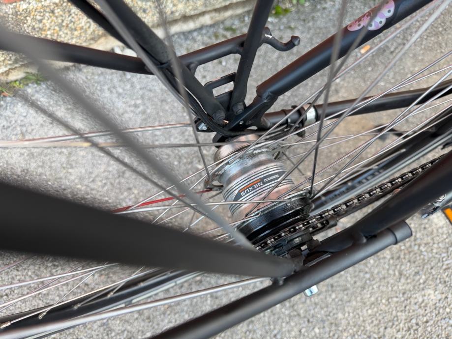 Ima 7 brzina u glavi, Shimano Nexus i svjetla na dinamo u kotaču. Obje kočnice ručne i zadnja još torpedo.