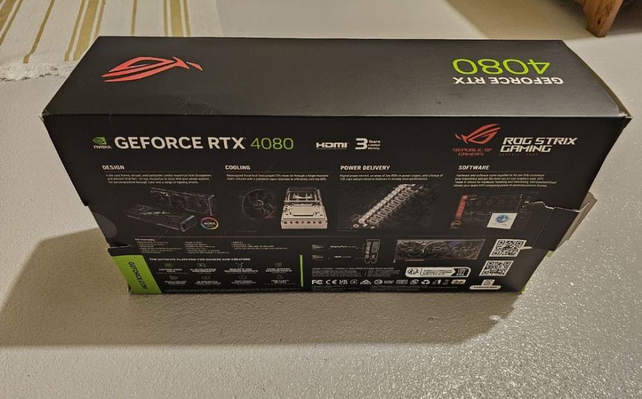 Prodajem rabljenu grafičku karticu GeForce RTX 4080 ROG Strix Gaming marke ASUS. U odličnom je stanju i pruža visoke performanse za igrače.