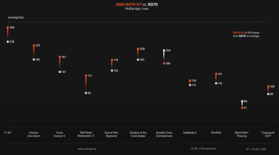 RX 9070 XT bolje radi u rasterizaciji, ali u ray-tracing igrama razlike mogu varirati ovisno o naslovu.