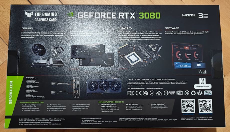 ASUS TUF GeForce RTX 3080 GAMING V2 O10G, nova, zapakirana