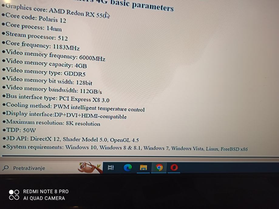 -za 120eura AMD RADEON RX590 8GB(Memory Type-Samsung),256-bit,14nm,Stream proc. 2304, HDMIx1+DPx3;Maksimalna razlučivost: 4096 × 2160;napajanje 8-Pin,DirectX 12,VR READY,CoreClock 1380MHz,Memory Clock 2000MHz,prepor. napajanje 500W,potrošnja 225W,PCI Express 3.0x16 ...NOVO garancija proizv.