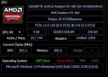 GGIGABYTE AORUS Radeon RX 580 GDDR5 SDRAM