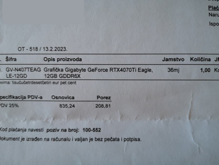 D=301 V=136 Š=58 mm 90mm fanx3, kupljena u 13.2.2023 Instaru. s orginalnim računom i kutijom i priključcima .Garancija ukupno 36 mjeseci. Uredno stanje bez problema -Razlog prodaje kupnja jače grafičke radi 4kmonitora. Bez zamjena, molim. LINK proizvoda