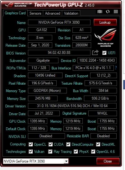 ♦ MODEL: GEFORCE RTX™ 3090