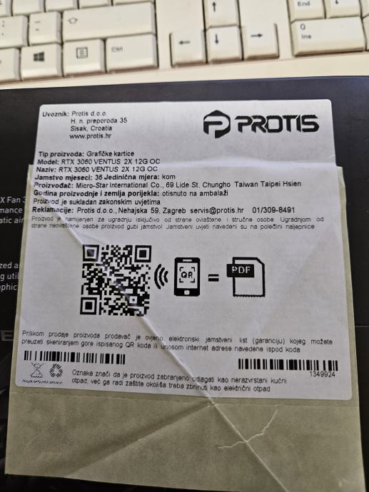 GRAFIČKA KARTICA NVIDIA MSI RTX 3060, 12 GB DDR 6,PCI 4.0