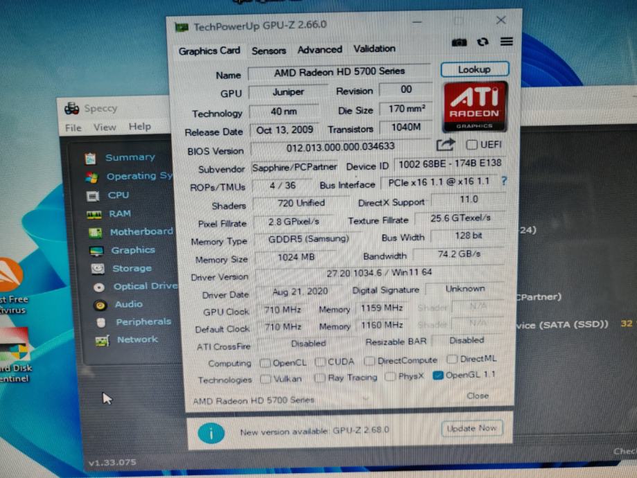 Prodajem rabljenu grafičku karticu Sapphire VaporX ATI Radeon HD 5750 s 1GB DDR5 memorije. Grafička kartica dolazi s AMD procesorom i VaporX hlađenjem za optimalan rad. Idealna za nadogradnju starijeg računala ili kao rezervni dio za entuzijaste.
