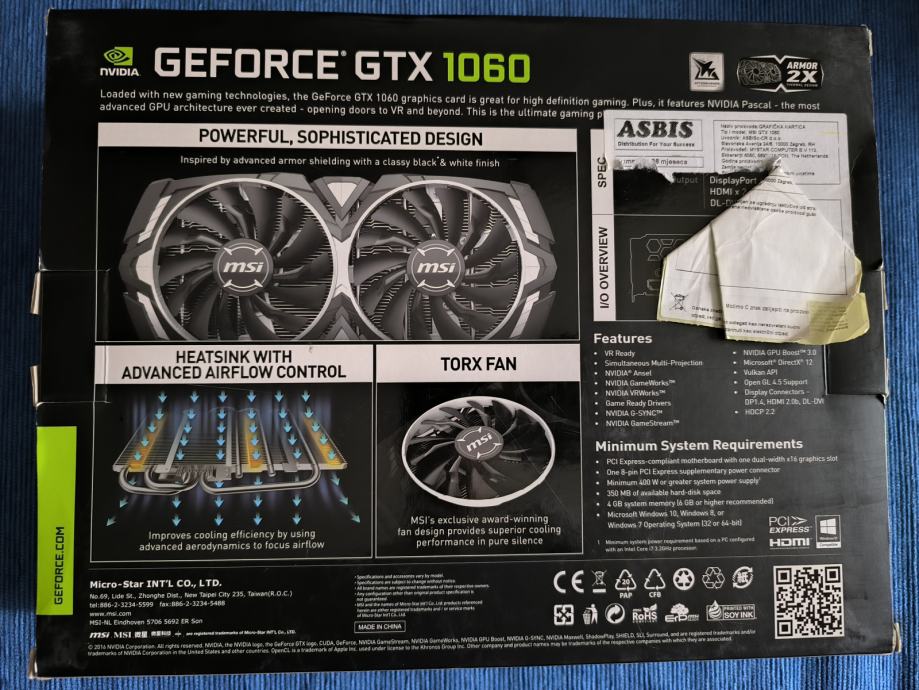 Grafička kartica GTX 1060 6 GB s kutijom.