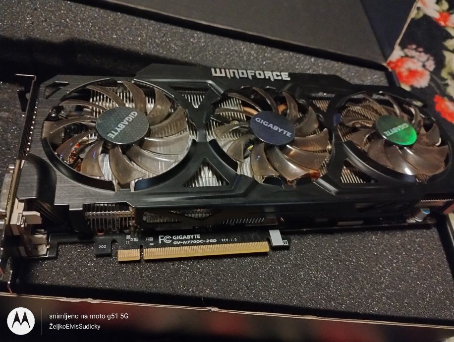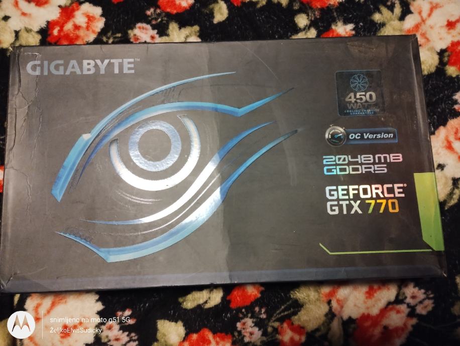 Graficka kartica koristena za sto je i namjenjena, znaci nikakav crypto mining i te gluposti nisu radjene sa njom, samo gaming, 2gb GDDR5 overclock gigabyte izdanje dakle malo nabrijanija od obicne gtx 770,vrti sve poznate naslove,kod mene vrtila gta v, LOL, halo mcc, horizon zero dawn i razne druge, ima cd sa driverima,redovno odrzavana mijenjana termalna pasta