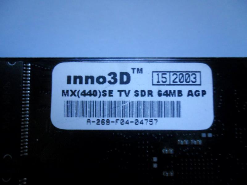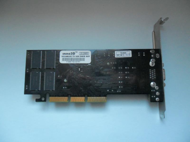 Prodaje se grafička kartica Inno3D MX(440)SE TV SDR 64MB za AGP slotove, s VGA, S-Video i Composite (RCA) izlazima. U potpunosti funkcionalna, kao i njen ventilator.