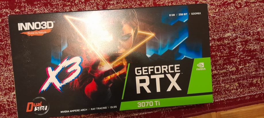 Prodajem grafičku karticu Inno3d RTX 3070 ti, hrvatsko jamstvo do 2. mjeseca 2025., potpuno ispravna, može se isprobati u Osijeku, korištena za gaming. Preuzimanje u Osijeku ili šaljem poštom nakon uplate na račun, nikakve drugačije kombinacije ne dolaze u obzir, molim bez zamjena, cijena je 480 eura.