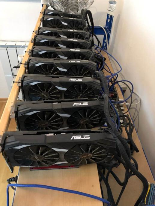 Prodajem mining rig. Komplet kupljen u Svijet medija store u Zagreb. Original garancija, moguce i kompletno pakiranje u pripadajuce kutije sa serijskim brojevima. Slozen za mining na simple mining platformi. Pod garancijom od 24 do 48 mjeseci, ovisno o komponentama. Rig se sastoji od 8 grafickih te 3 napajanja. Performanse se nalaze na jednoj od slika, kopao je iskljucivo Etherum. Popis je sljedeci: