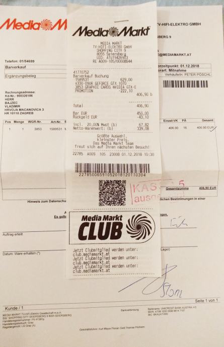 Prvi vlasnik-nepušač - kupljeno 01.12.2018. u Media Marktu (Graz - Seiersberg)