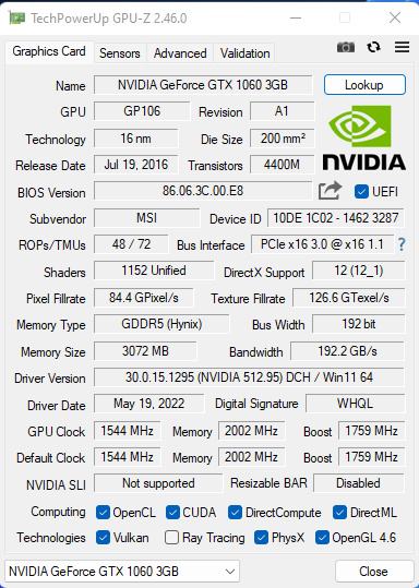 Verzija sa 1 ventilatorom, model GTX 1060 3G OCV1