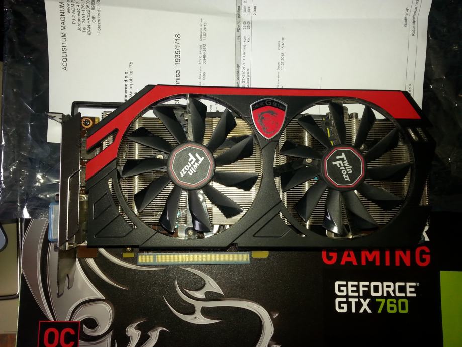 Na prodaji MSI Gtx 760 GAMING grafička kartica, radi savršeno bez ikakve mane. Prodajem ju iz razloga jer nemam vremena ništa igrati zbog obaveza na fakultetu. Kupljena sredinom 7. mjeseca 2013. godine u ADMu i još ima preko 2 godine garancije. Na slikama je priloženo što sve ide uz grafičku.